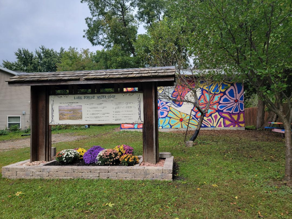 Of special note, the Lake Forest Water Co op has also installed their commemorative sign at the site highlighting the historical timeline of the Co op. It’s really lovely and brings this whole public corner area together as a wonderful “mini park” for passerby’s to stop and rest and enjoy our beautiful area. Please come and check it all out!